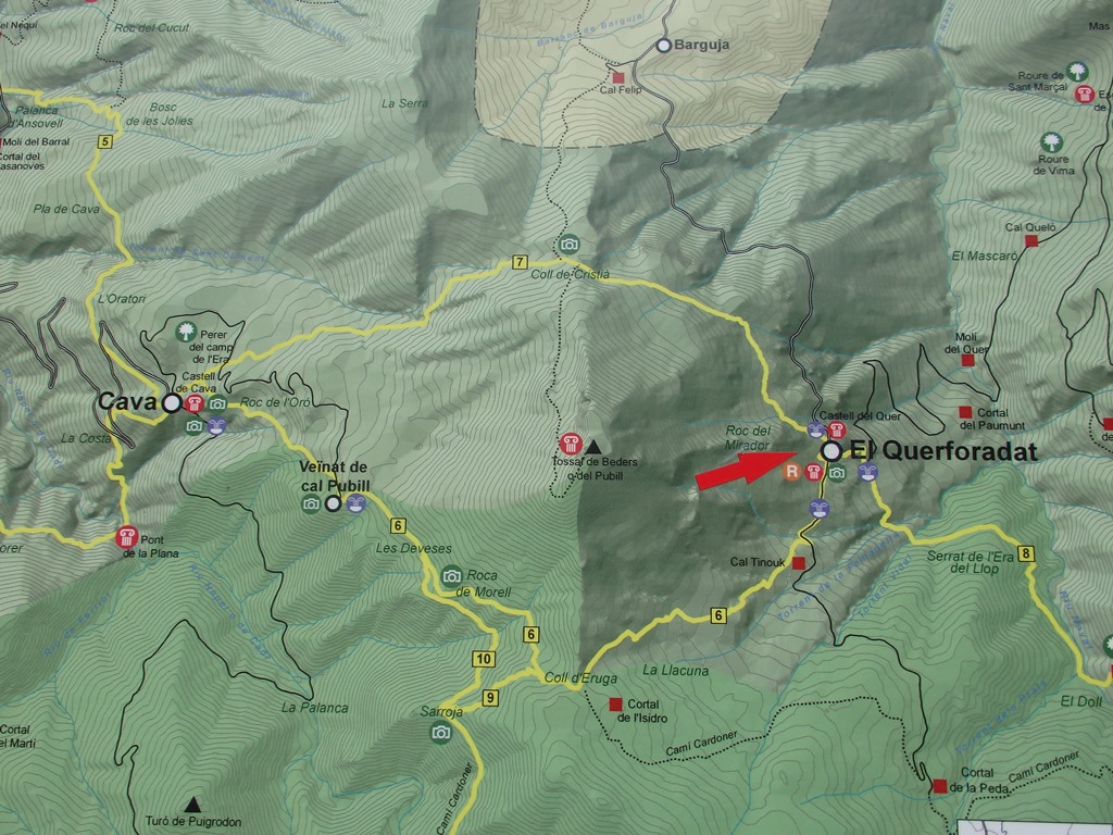 Uns metres abans d'arribar a la balma hi ha un corriol que s'enfila al turó de l'Espluga, és molt interessant pujar-hi per la gran panoràmica què gaudirem.